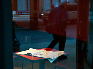 NPR has a contest for three-minute fiction, in which they provide a picture, and you must write a story about the photo that can be read in under three minutes. I entered once. The picture was of an open newspaper at an empty table. It seemed sad. So I decided to write a story from the perspective of the newspaper as it contemplates the twilight of its existence.